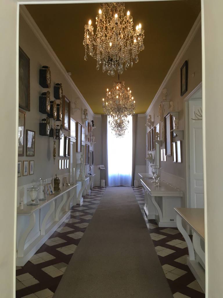 Von der cremefarbenen Fassade, die von Laternen beleuchtet wird, bis hin zum Pool, der in abgeschiedenen Gärten versteckt ist, ist das blumenreiche Schloss voller Charme. Die Erinnerungen an den Marquis de Sade beschränken sich auf die Kunst – mehrere verträumte Frauenakte und ein Weinkeller, der einer erotischen Bibliothek gleicht. Ein sehr feminines Schloss präsentiert sich jetzt. Quasi als Gegenentwurf zur Historie des ungeliebten Libertins, war es nur vielmehr ein Schritt hin, der Familiengeschichte qua weiblicher Inspiration durch konsequentes Weiss zu begegnen. Behutsam sind goldschimmernd die Aspekte der Zartheit auf dem Reinweiss nuanciert, das Farbspektrum bewegt sich vom lichten Ahornholz im Frühstücksraum zum leichten cremefarbenen Pastell in Lounge und Flur. Bisquit Porzellan und reizende Glaswaren versprühen trotz ihrer Schlichtheit ihren damenhaften Glanz. Und deliziöse Zeichnungen verzieren das opulente Treppenhaus, das mit einer wunderbaren Leichtigkeit selbst die schnellsten Schritte dämpft.