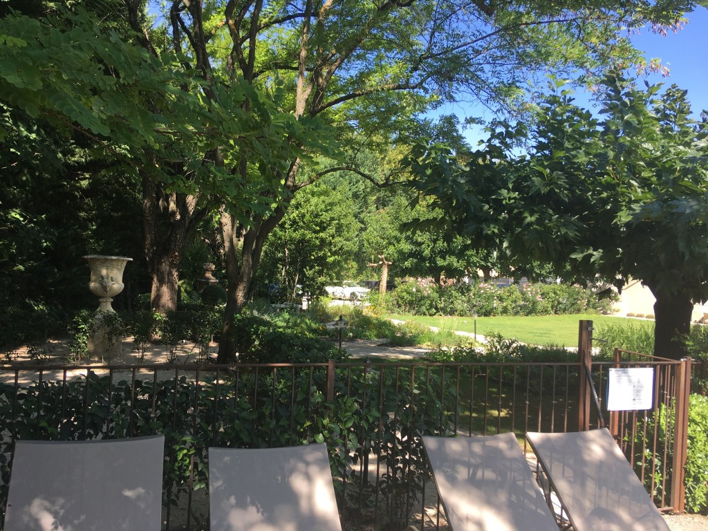 Ein plätschernder Brunnen und eine von uralten Akazien und Platanen eingerahmte Terrasse bilden den Rahmen für diesen historischen Rückzugsort. Mit den kleinen Salons und geschwungenen Treppen flirrt das Schloss wie eine intime Angelegenheit, verzaubert mit versteckten Ebenen und exzentrischen Kunstwerken. Die Herrenzimmer zeigen verblasste Möbel im Empire-Stil, romantische Tagesbetten und Einblicke in ein mit Lavendelbeeten, Maulbeer- und Olivenbäumen bepflanztes Gelände. Das elegante, von Bücherregalen aus dem 18. Jahrhundert gesäumte Restaurant befindet sich im ehemaligen Theater und in der Bibliothek des göttlichen Markgrafen, doch de Sades köstliche Dekadenz ist nur noch in den Desserts zu spüren. Und im Schwimmbad aus traditionellem Gestein sowie einer herrlichen Aussicht auf Mont Vernoux läßt sich das Leben herrlich geniessen.